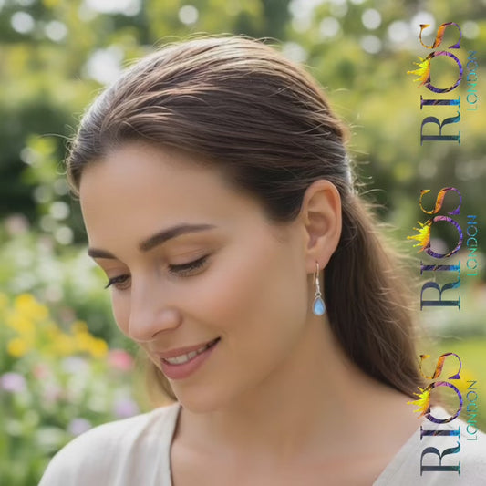 925 Sterling Silver Moonstone Dangle Earrings Hook Ear Tear Drop Studs Gift Box