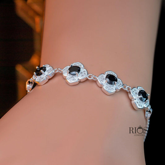 925 Sterling Silver Black ONYX Lab-Created Gemstone Bracelet Gift Boxed