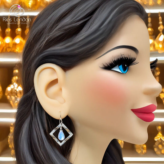 925 Sterling Silver Moonstone Square Frame Teardrop Dangle Earrings – Gift Boxed