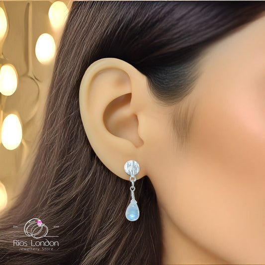 925 Sterling Silver Moonstone Dangle Earrings Hook Ear Tear Drop Studs Gift Box