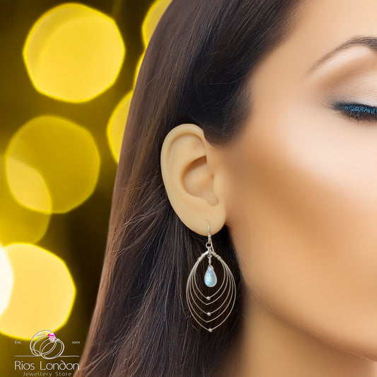 925 Sterling Silver Double Hoop Dangle Moonstone Earrings – Teardrop, Gift Boxed