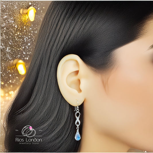 925 Sterling Silver Natural Moonstone Infinity Dangle Earrings Love Design, Gift