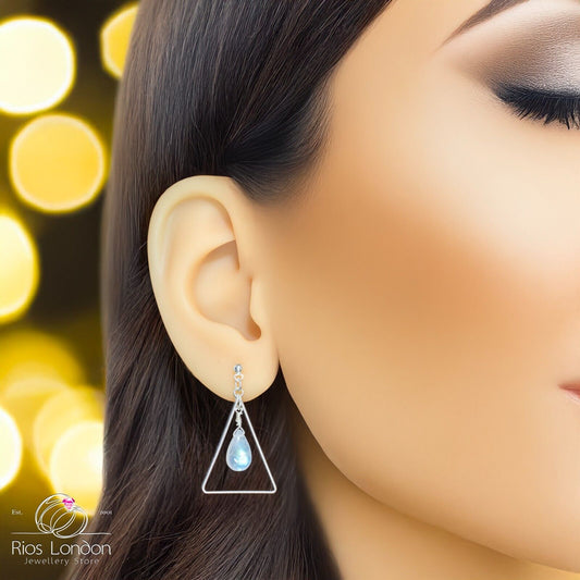 925 Sterling Silver Triangle Moonstone Teardrop Dangle Earrings - Gift Boxed