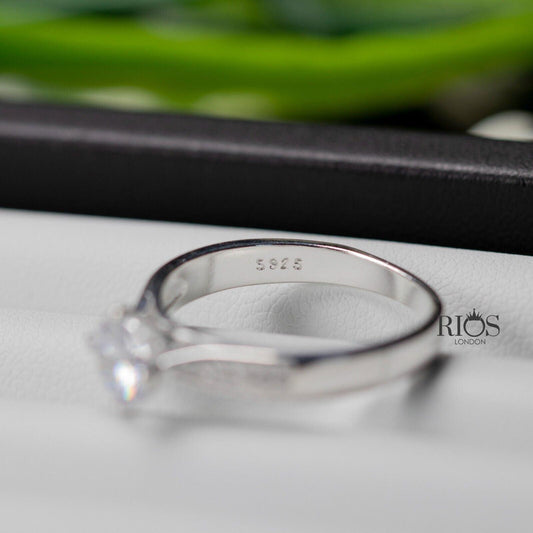 925 Sterling Silver 1.0 Carat Solitaire Engagement Lab-Created Zircon Ring Boxed