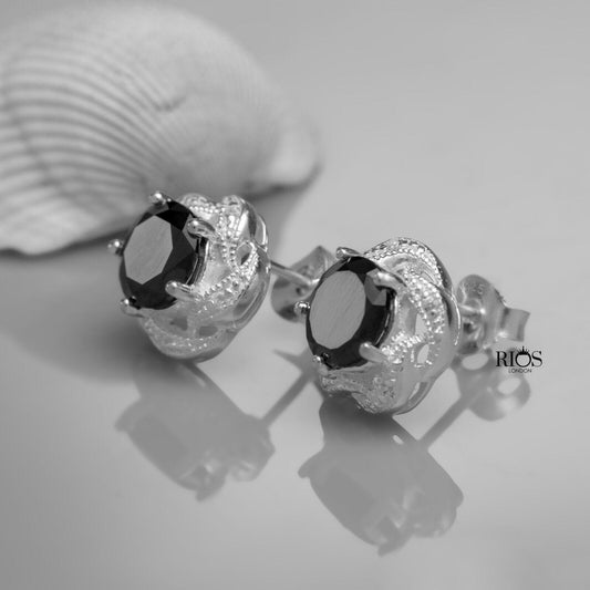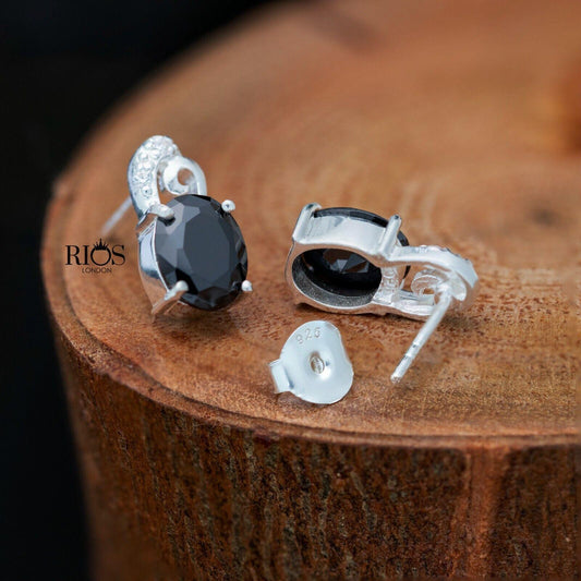 925 Sterling Silver Black Onyx Lab-Created Gemstone Studs Earrings Gift Boxed