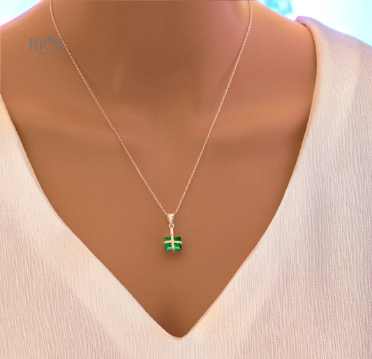 925 Sterling Silver Emerald Green Lab-Created Gemstone Chain Necklace Gift Boxed