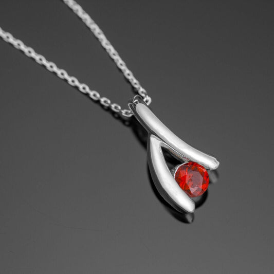 925 Sterling Silver Red Garnet Lab-Created Gemstone Chain Necklace Gift Boxed