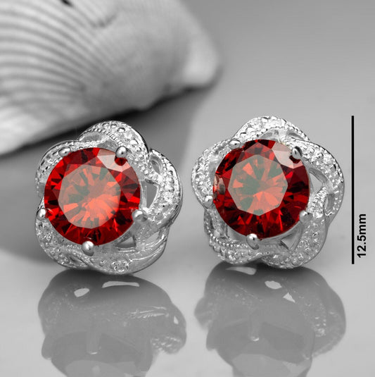 925 Sterling Silver Red Garnet Lab-Created Gemstone Studs Earrings Gift Boxed