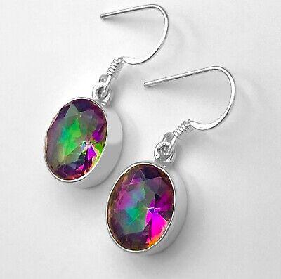 New 925 Sterling Silver Mystic Fire TOPAZ Drop Dangle Earrings Hook Ear Studs