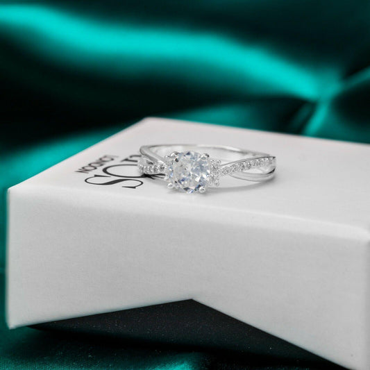 925 Sterling Silver 0.75 Carat Twist Solitaire Lab-Created Zircon Ring Boxed