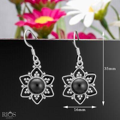 925 Sterling Silver Onyx Star Dangle Drop Black Earrings Hook Studs Gift Boxed