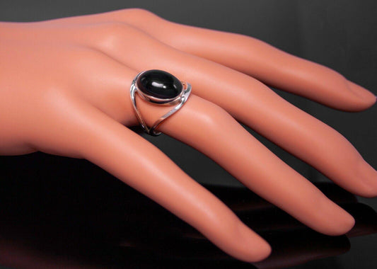 Beautiful 925 Sterling Silver Elegant Black Oval ONYX Gemstone Ring Gift Boxed