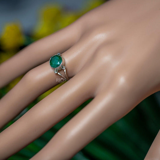 New 925 Sterling Silver Emerald Round Gemstone Women Green Boho Ring Gift Boxed