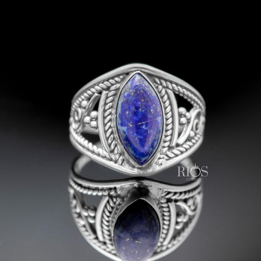 New 925 Sterling Silver Marquise Lapis Lazuli Gemstone Women Boho Ring Boxed