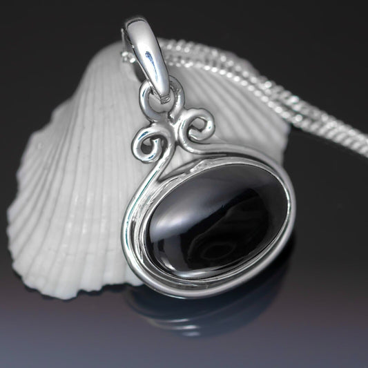 925 Sterling Silver Natural Onyx Necklace Oval Chain Pendant Gift 4 Women Boxed