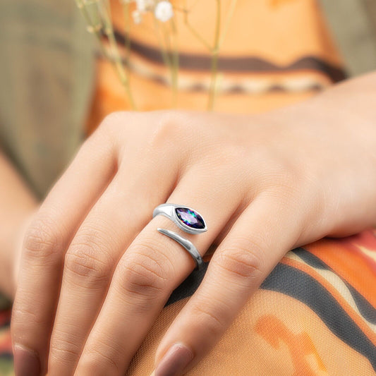 925 Sterling Silver Mystic Fire Topaz Gemstone Snake Adjustable Ring Gift in Box