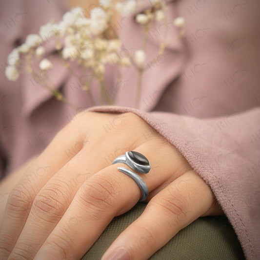 Stunning 925 Sterling Silver Onyx Gemstone Snake Adjustable Ring Gift In Box