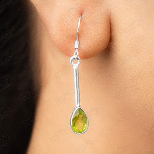 Handmade Natural Peridot Long Earrings 925 Sterling Silver Dangle Drop Stick