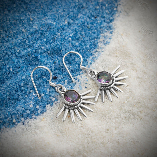 925 Sterling Silver Mystic Fire Topaz Gothic Spiky Earrings - Gift For Her Boxed