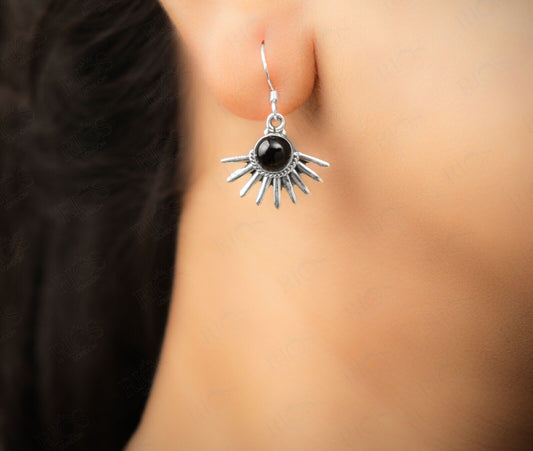 Handmade Natural Onyx Long Earrings 925 Sterling Silver Dangle Drop Stick
