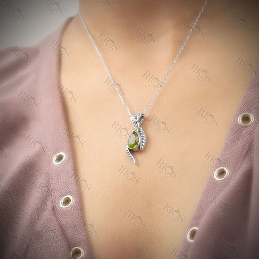 Handmade 925 Sterling Silver Leaf Peridot Necklace Green Gemstone Gift Boxed