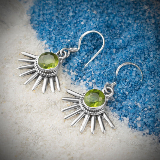 925 Sterling Silver Natural Peridot Olive Green Gothic Spiky Earrings Gift Boxed