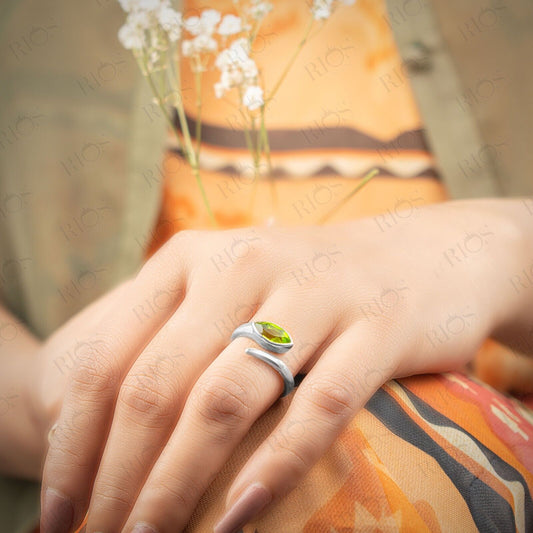 Stunning 925 Sterling Silver Peridot Gemstone Snake Adjustable Ring Gift In Box