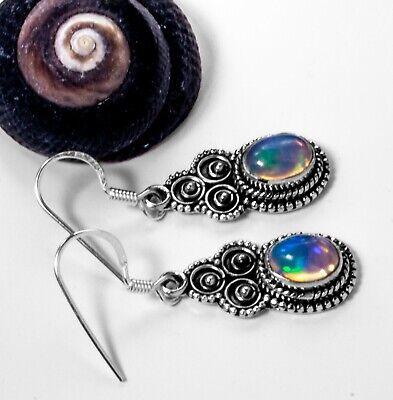 925 Sterling Silver Ethiopian OPAL Drop Dangle Multicolour Earrings Hook Studs