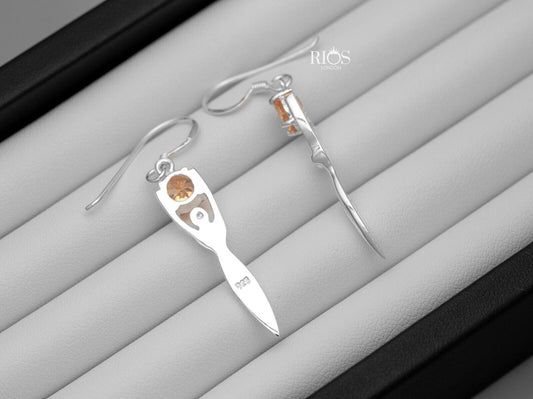 925 Sterling Silver Lady Sculpture Citrine Lab Created Earrings Gift Boxed