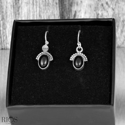 925 Sterling Silver Onyx Half Moon Ear Drop Dangle Oval Earrings Hook Gift Boxed