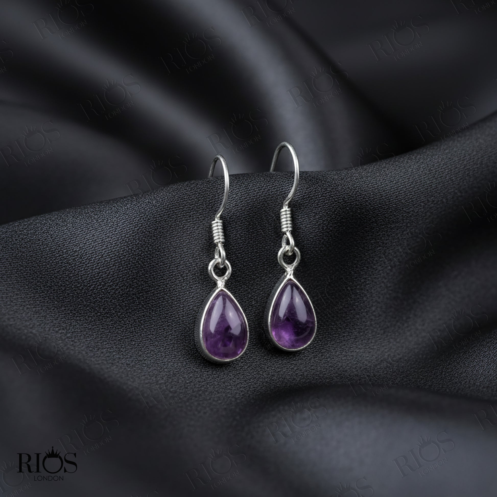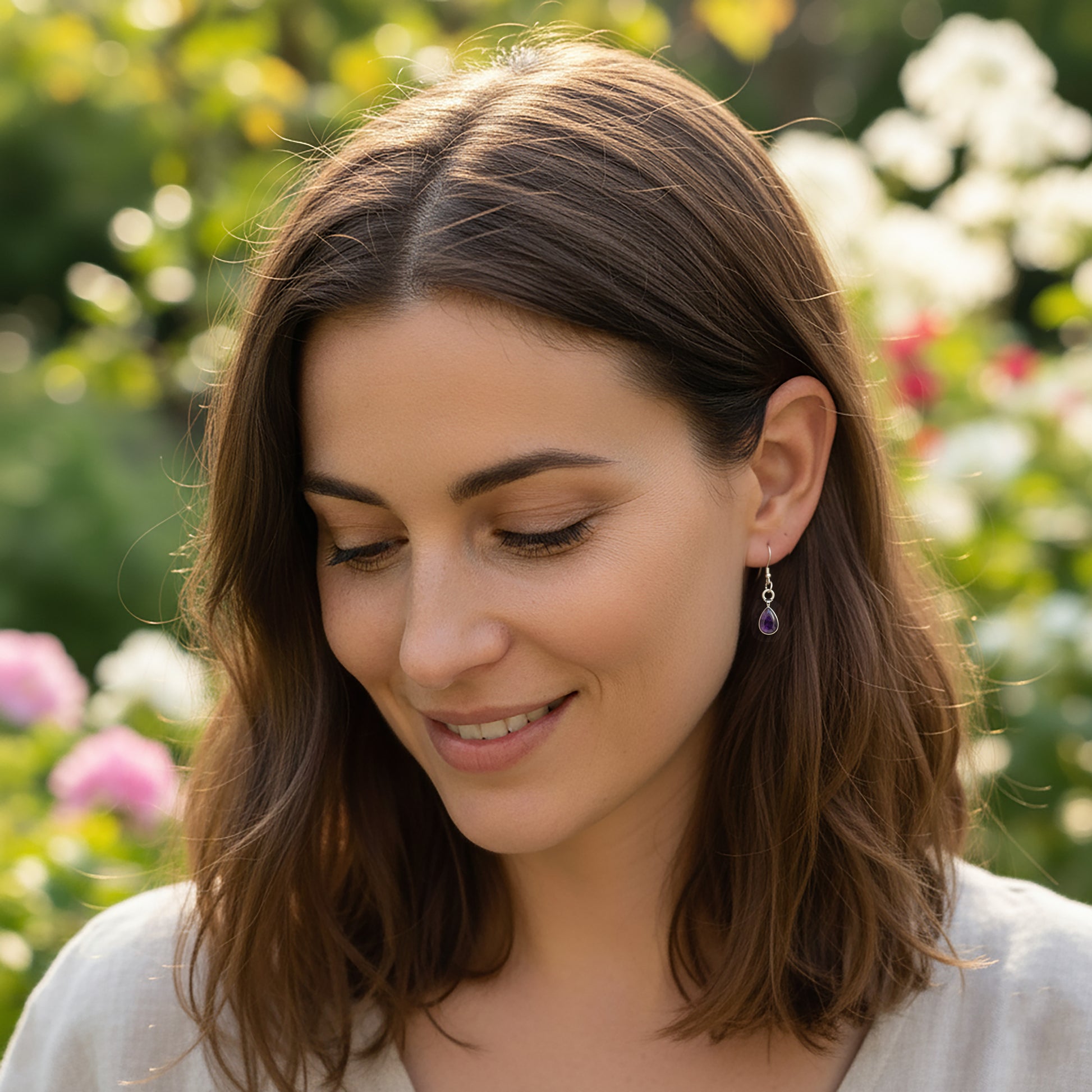 925 Sterling Silver Amethyst Teardrop Earrings โ Elegant Hypoallergenic Dangle Hook Design, Gift-Ready