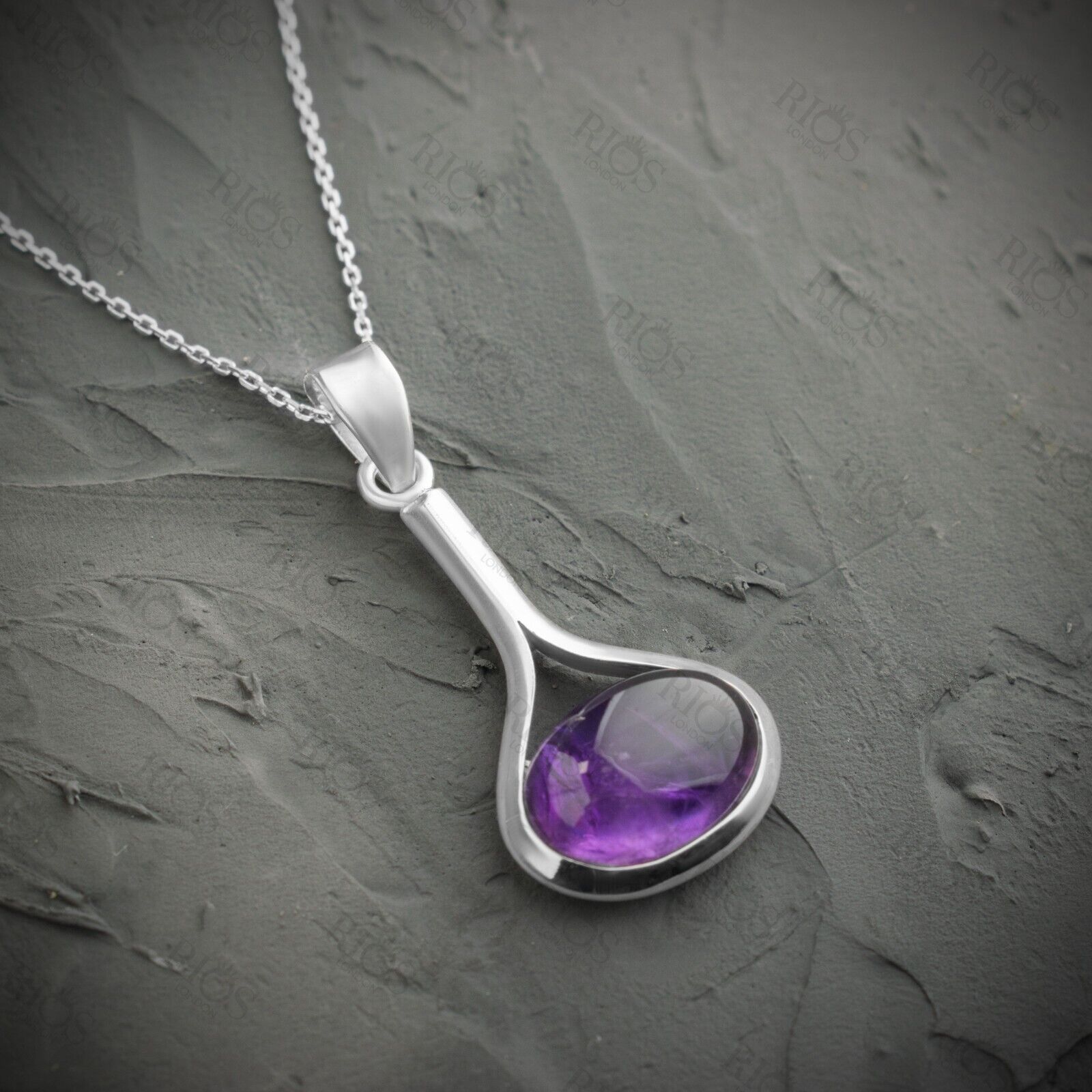 Beautiful sterling silver brand new Rios London oval pendant necklace with a natural purple amethyst.