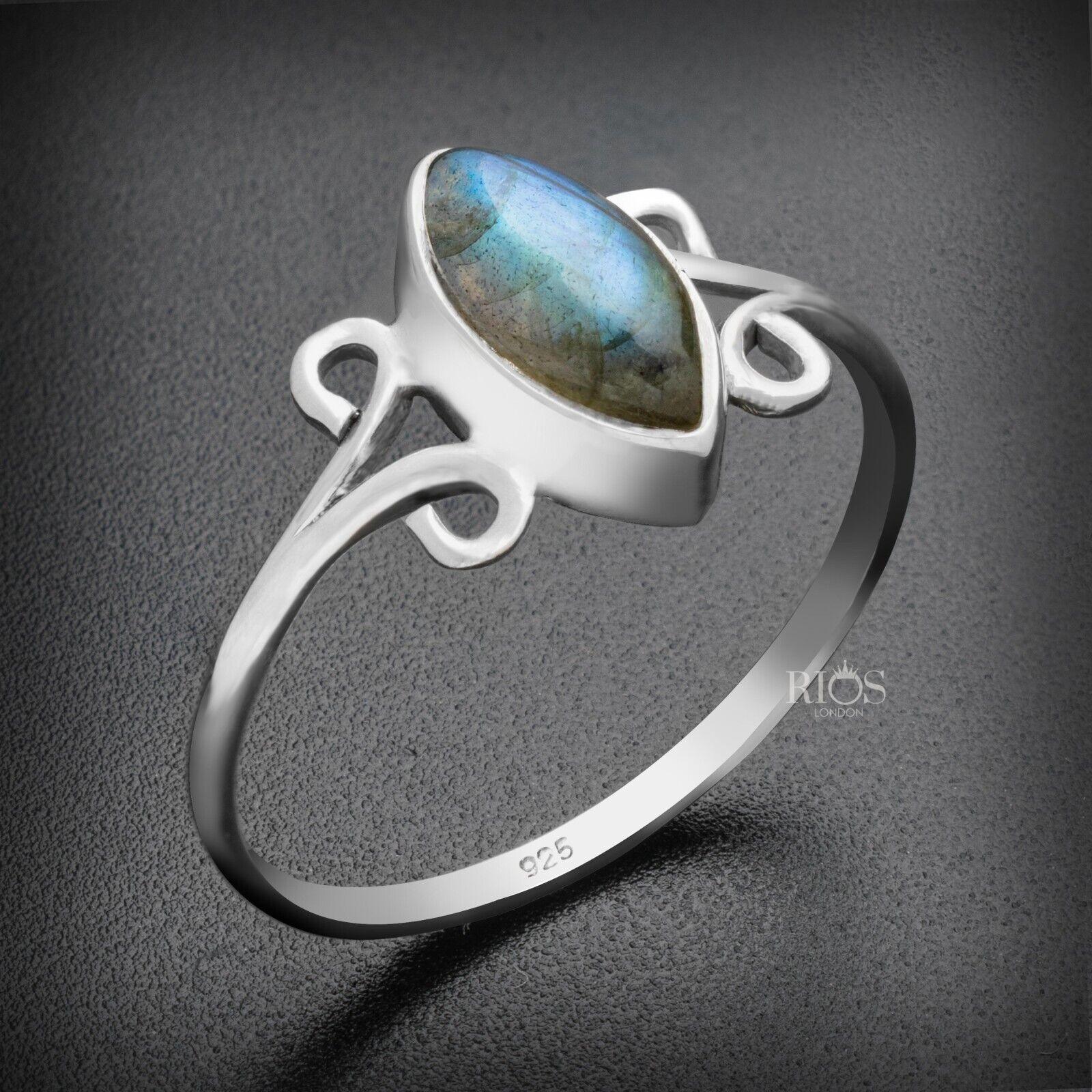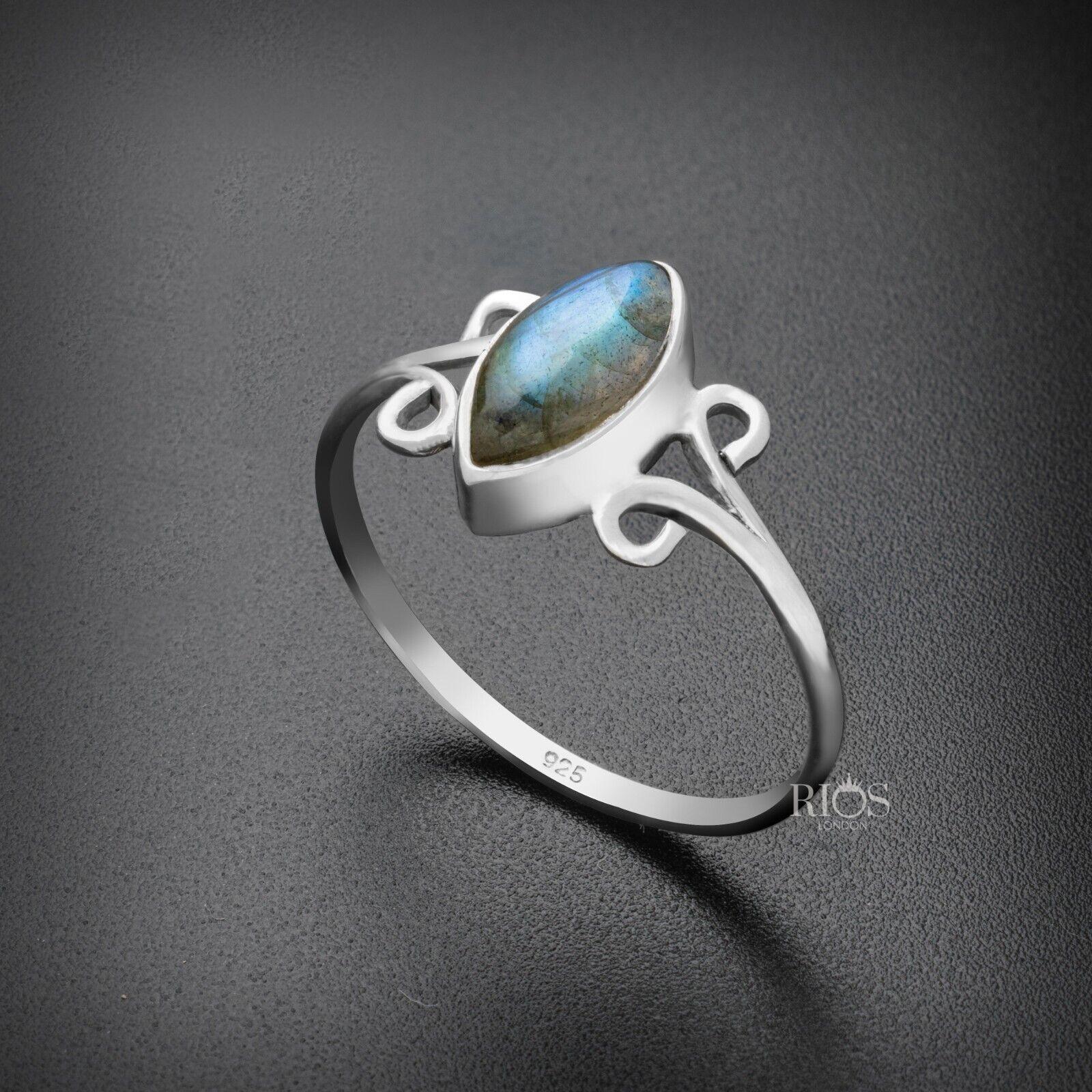 925 Sterling Silver Natural Labradorite Gemstone Women Ring Gift for her Boxed