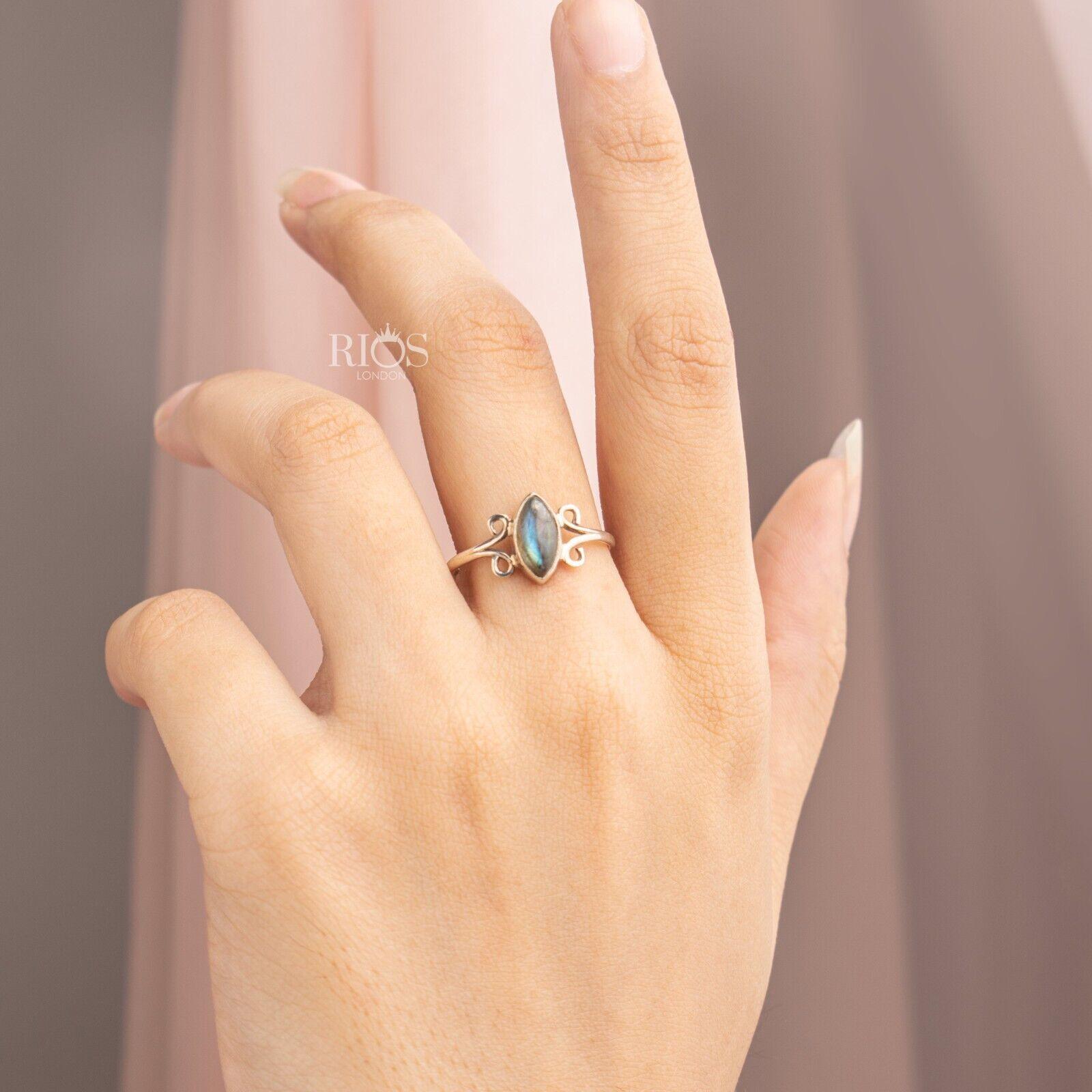 Crafted with care and precision, this ring features a stunning marquise Natural Labradorite Gemstone, making it a unique addition to your collection.
