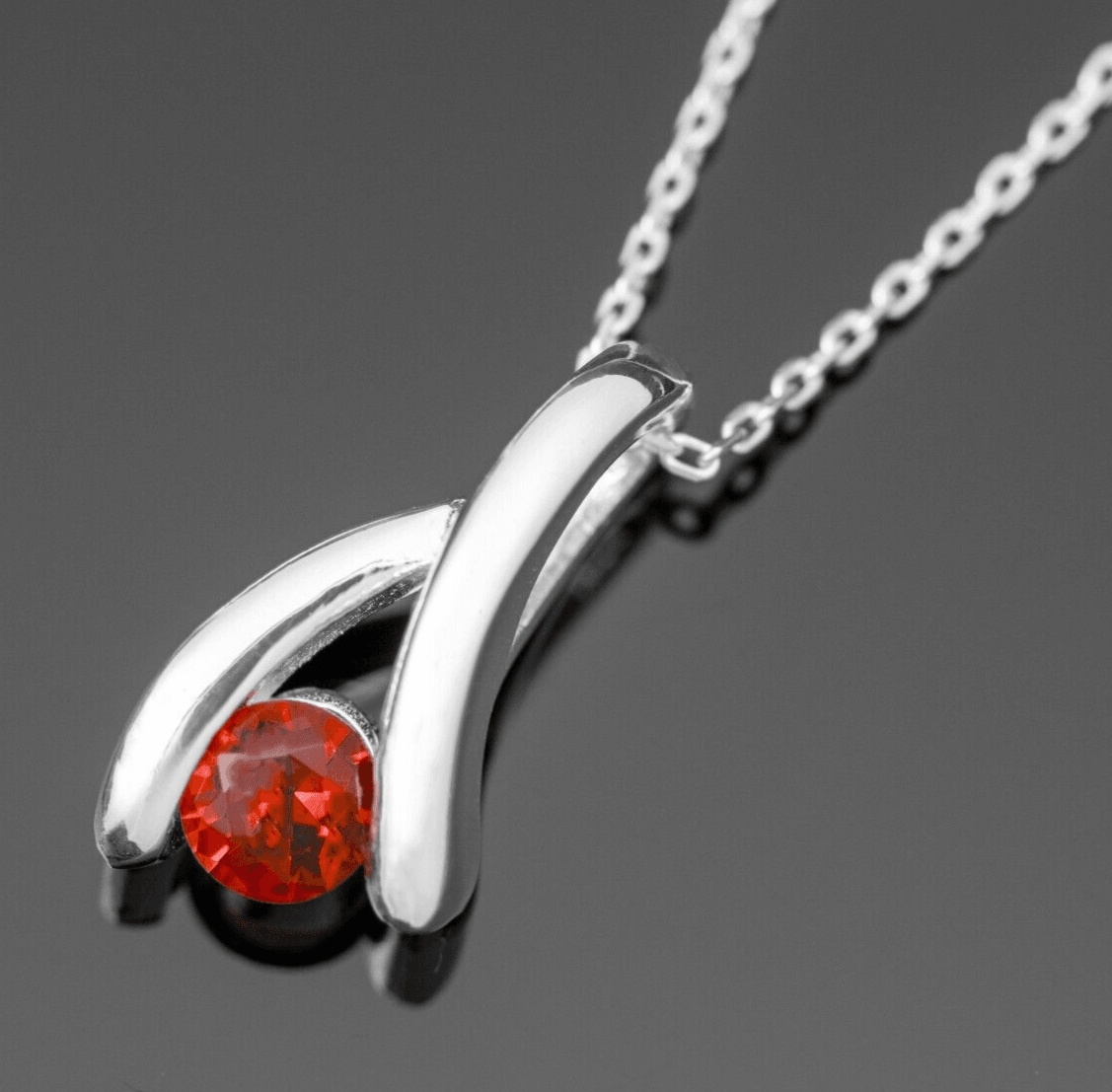 925 Sterling Silver Red Garnet Lab-Created Gemstone Chain Necklace Gift Boxed