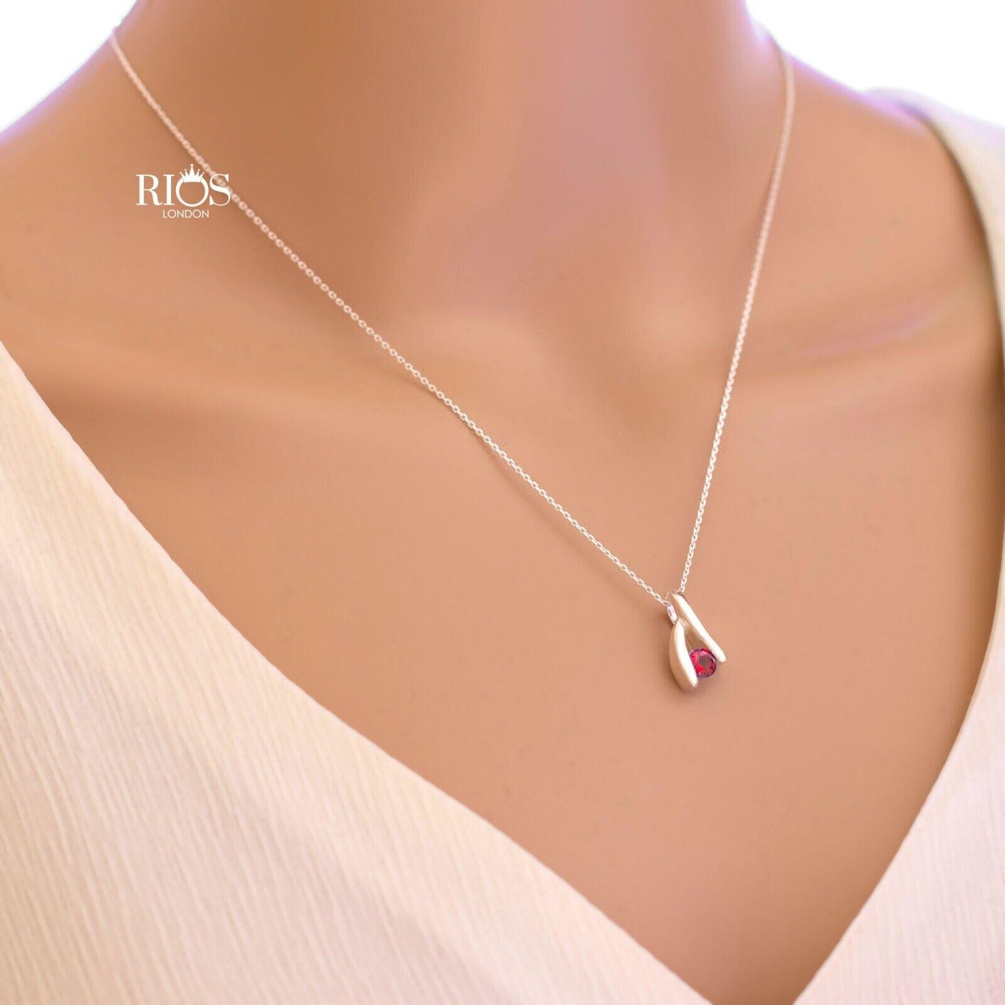 Beautiful sterling silver brand new Rios London pendant necklace with a natural red garnet.