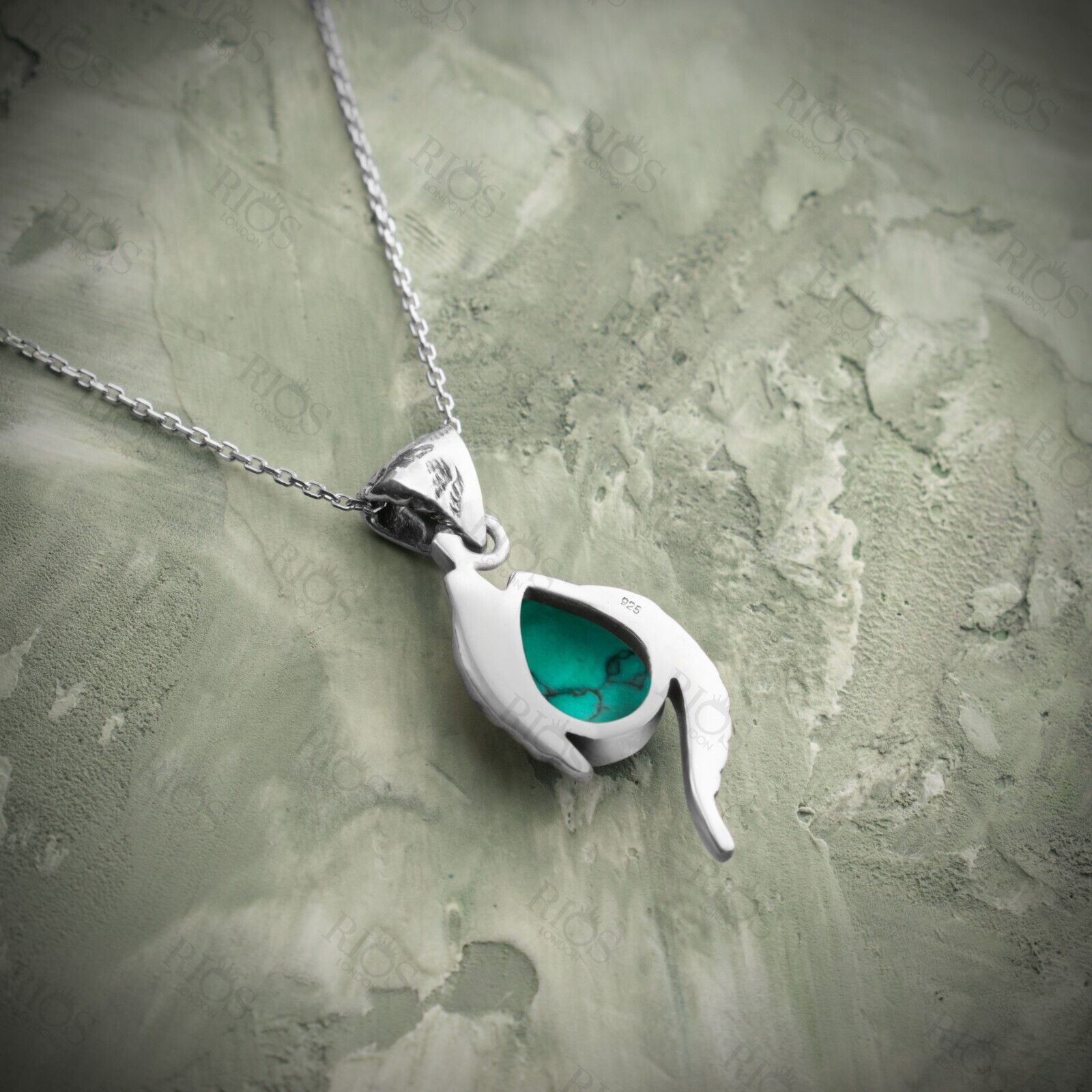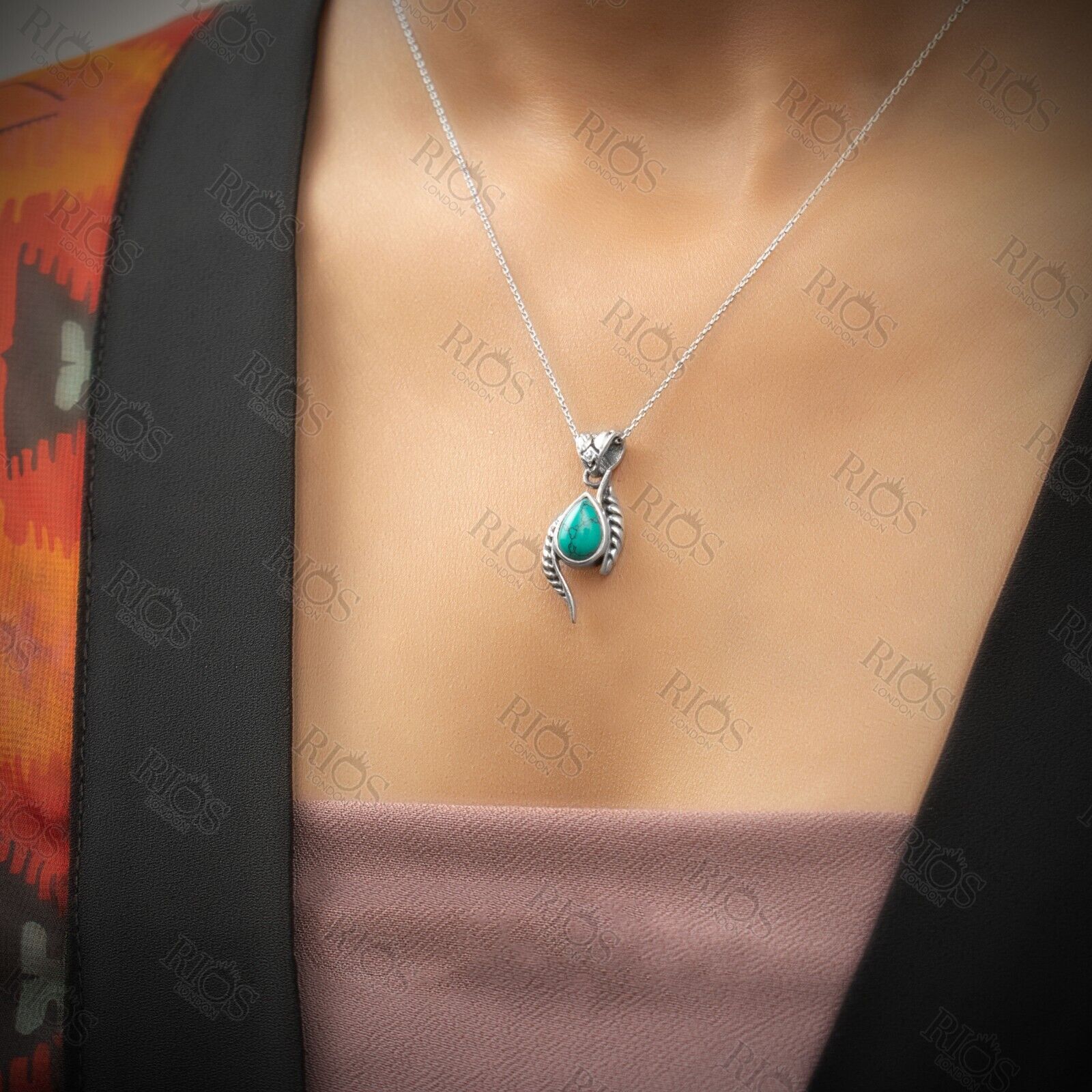 925 Sterling Silver Turquoise Leaf Necklace Gemstone Pendant Handmade Gift Boxed