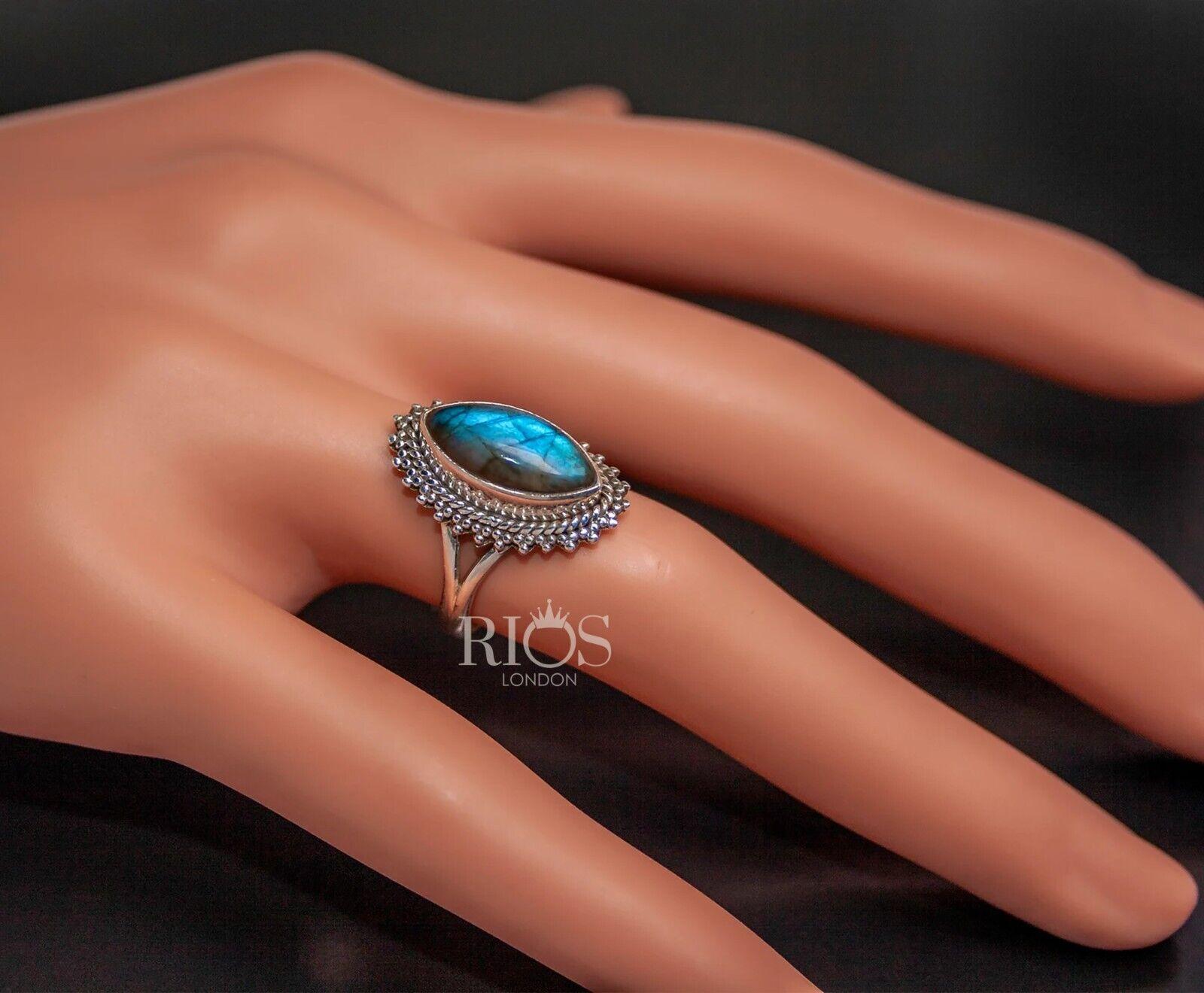 Elegant Labradorite 925 Sterling Silver Gemstone Ring RRP £43.99 Gift Boxed
