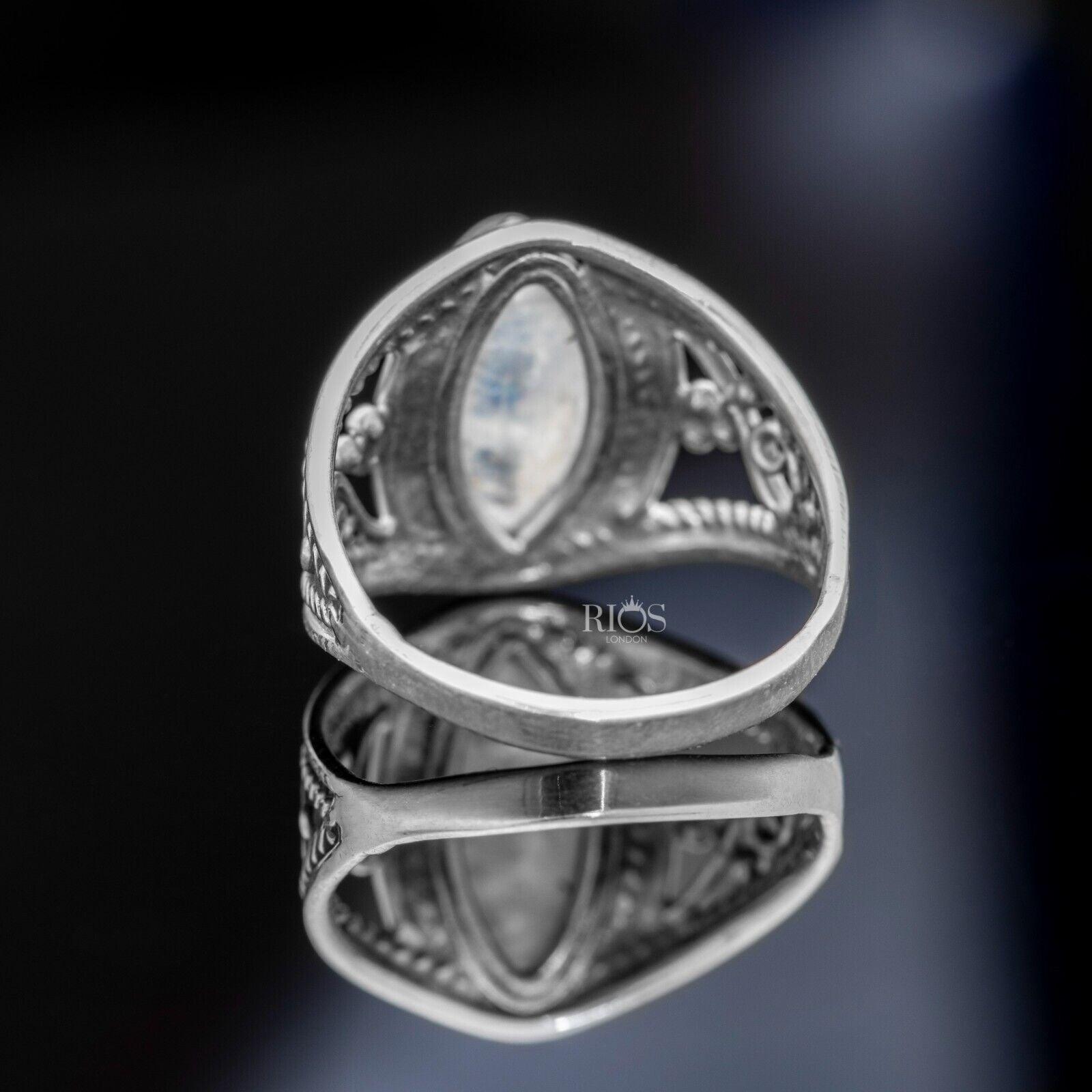 New 925 Sterling Silver Marquise Moonstone Gemstone Women Boho Ring Boxed