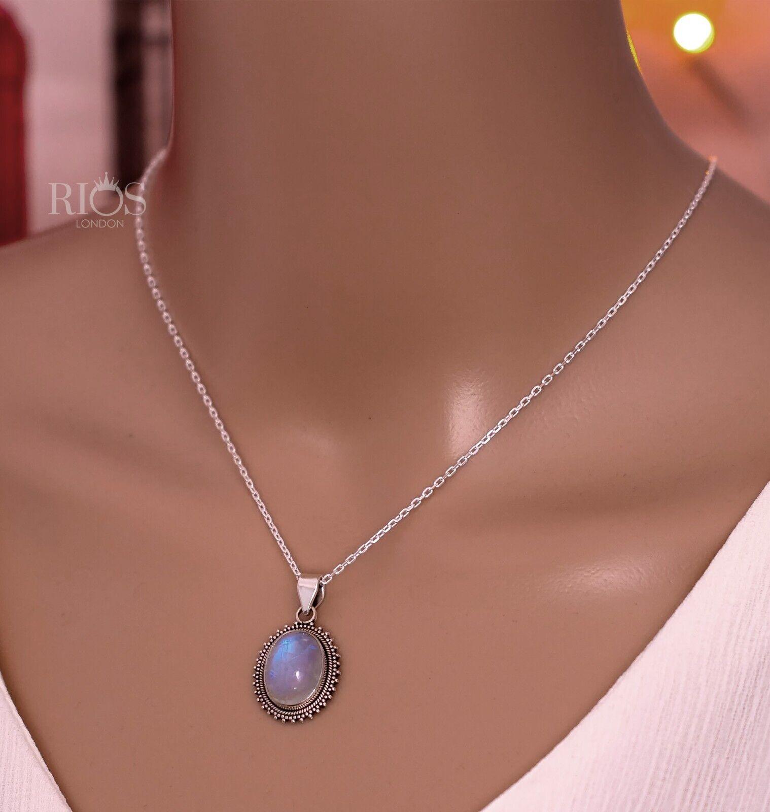 Superb Oval Moonstone 925 Sterling Silver Gemstone Necklace Pendant Gift Boxed